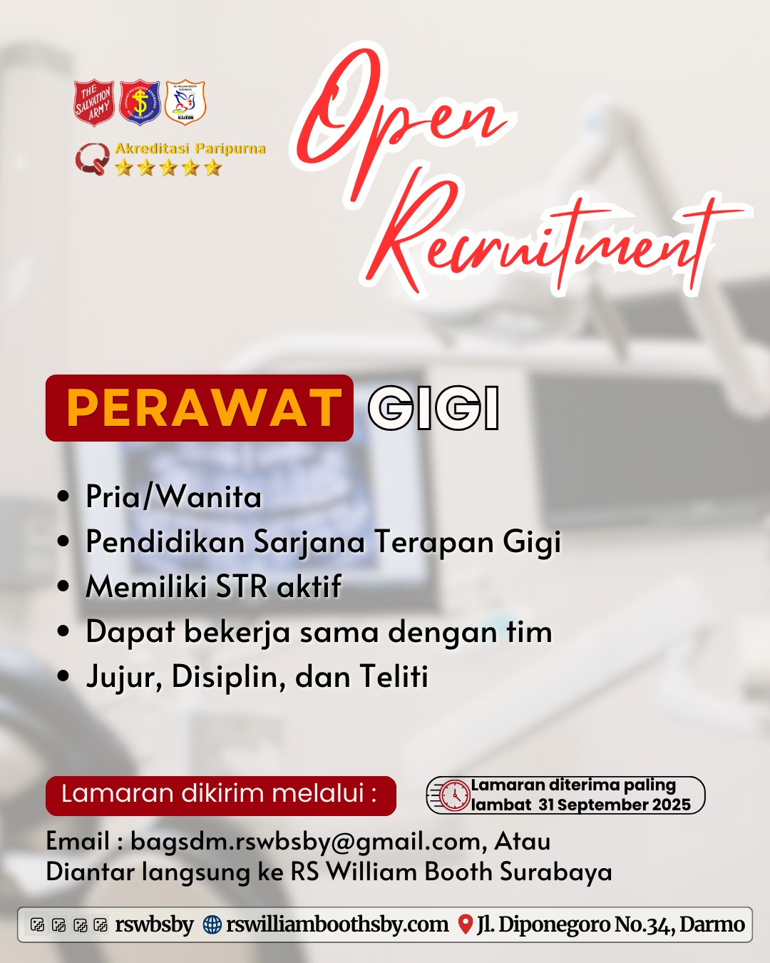 Kirimkan CV & Portofolio ke: bagsdm.rswbsby@gmail.com